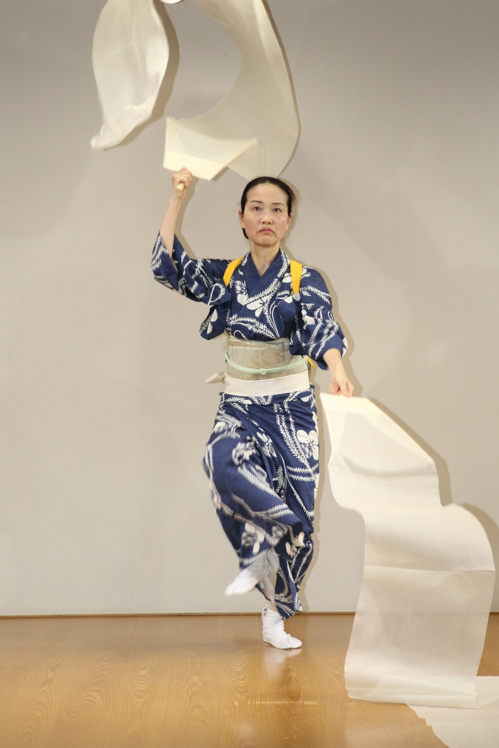 「足拍子」は、足を地面にトンと踏むものですが、例えば、西洋にもタップやステップという足を踏む動作があります。西洋のタップとの大きな違いは、タップは靴を履きますが、足拍子は靴を履きませんね。そして、そもそも体の使い方が違います。日本の伝統芸能では、足裏を地面と同じく水平に上げて、その位置からまっすぐ地面に打ち下ろす感じで行うからです。